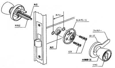 ※スピンドル(角芯)には、溝が切ってあります。取り付けるときは、この切欠き方向を合わせて差し込んでください。