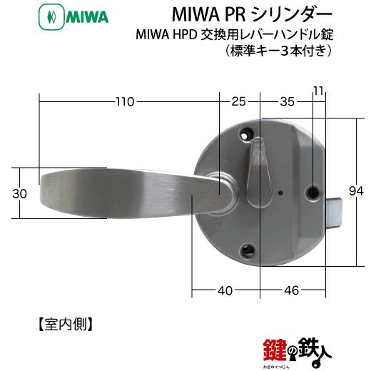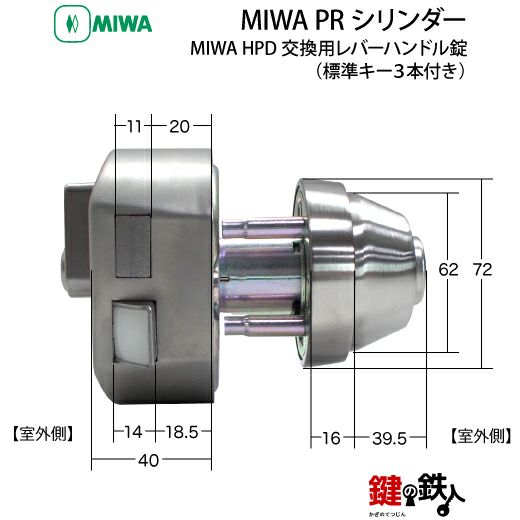 「MIWA社のHP40タイプ」と「GOAL 面付箱錠5350タイプ」と 「SHOWA 面付錠516タイプ」の3タイプは、「ドアノブの中にやや引っ込んだところに、カギ穴があるタイプ」です。