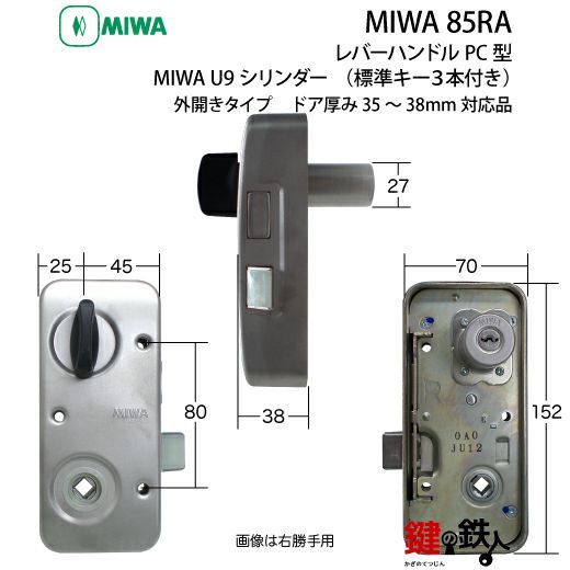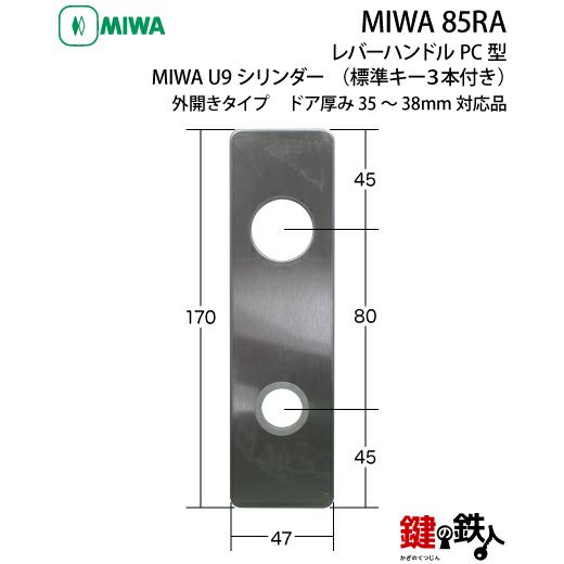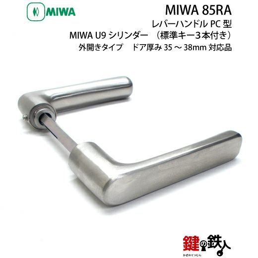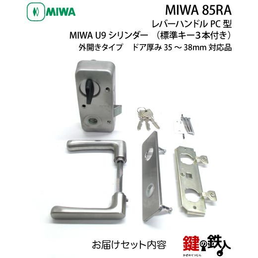 【1】MIWA 85RA用レバーハンドルPC型錠本体(シルバー色)+MIWA U9・85RA用交換シリンダー仕様