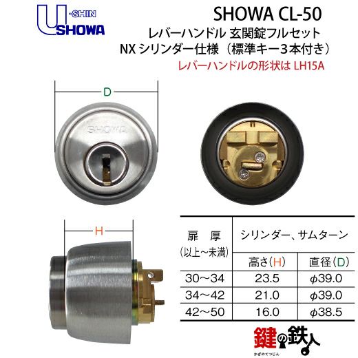 SHOWA CL-50レバーハンドル玄関錠 鍵(カギ) 取替え 交換用フルセット