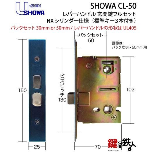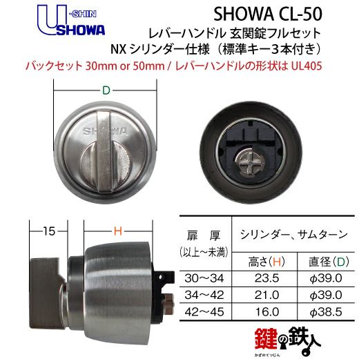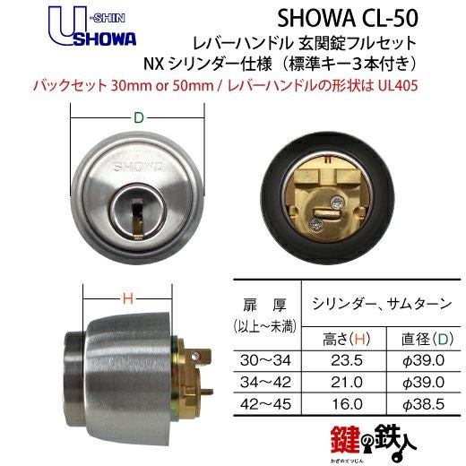 SHOWA CL-50レバーハンドル玄関錠 鍵(カギ) 取替え 交換用フルセット
