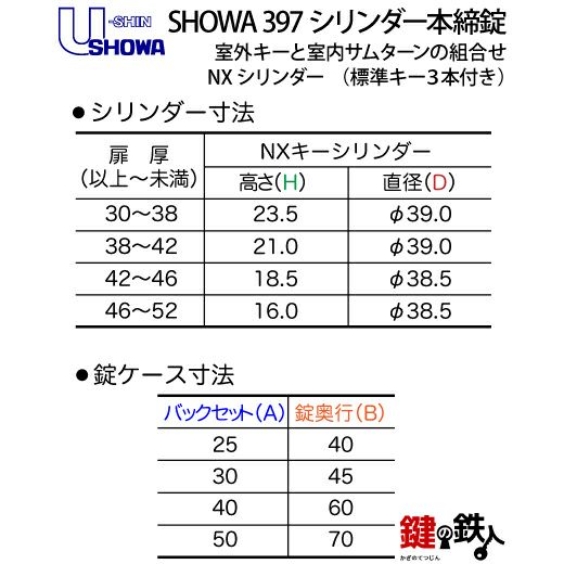 | U-SHIN SHOWA ユーシンショウワ 397 本締錠の図面 |