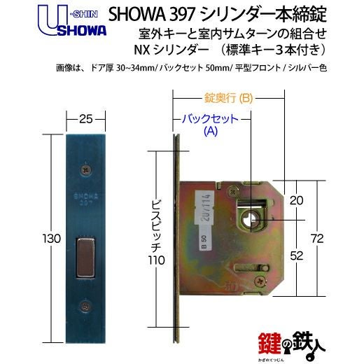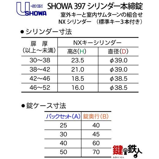 SHOWA397 シリンダー本締錠 NXディンプルキーシリンダー仕様