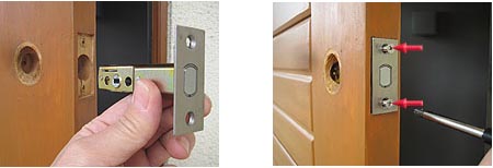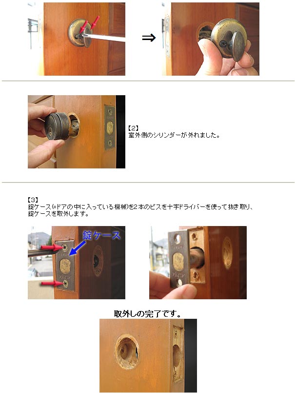 | 【4】 錠ケースをセットして2本のビスを十字ドライバーを使って留めます。 |