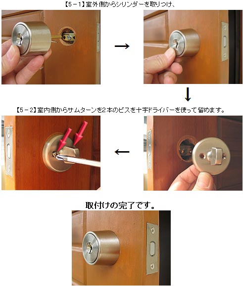| 【5】 次に、シリンダーを取りつけます。 |