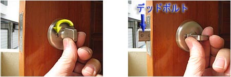 | 【6】 室内側のサムターンを90度回してみて、錠ケースのデッドボルト(かんぬき)がしっかりと出入りするか確認しましょう。 |