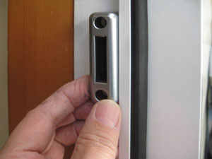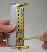 【3】開錠時にデッドボルトが支えない位置で、施錠時のデッドボルトの位置受け座に収まる位置を探します。