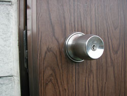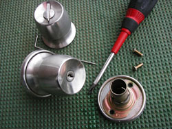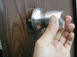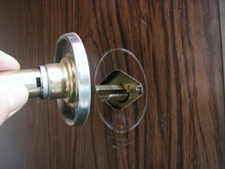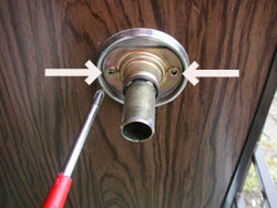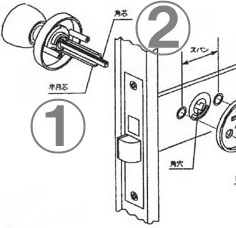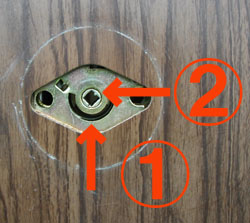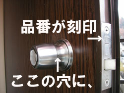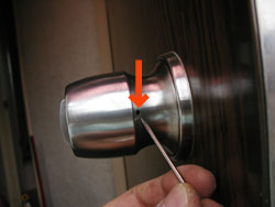 この穴に先が細い金属棒を刺し込むとノブが簡単に外れます。