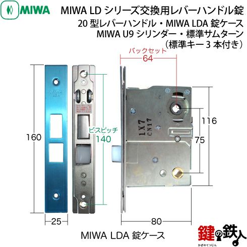 MIWA LDシリーズ交換用レバーハンドル錠【MIWA LDA】