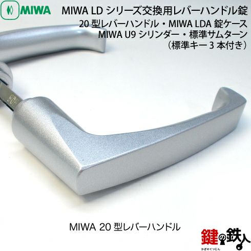 ・MIWA LDA錠ケースとアルミ製レバーハンドルのセット・シルバー色