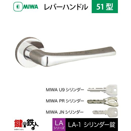 MIWA LAMAレバーハンドル錠交換用一式 シリンダー付き(玄関や勝手口) ステンレス製