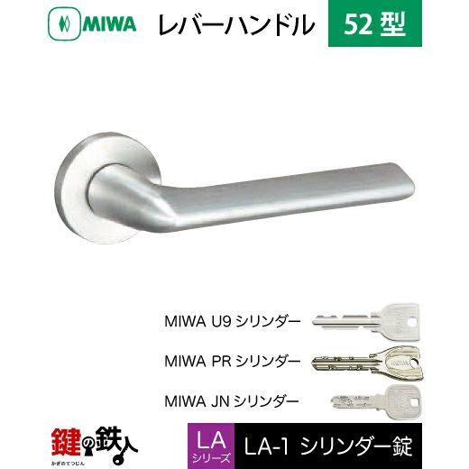 MIWA LAMAレバーハンドル錠交換用一式 シリンダー付き(玄関や勝手口) LA-1