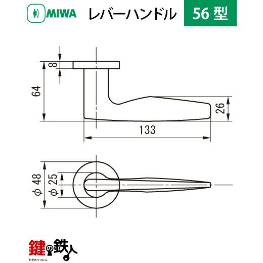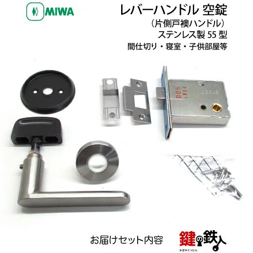 MIWA LO LDO用レバーハンドル 一式 ステンレス製 55-ST(戸襖ハンドル) 空錠