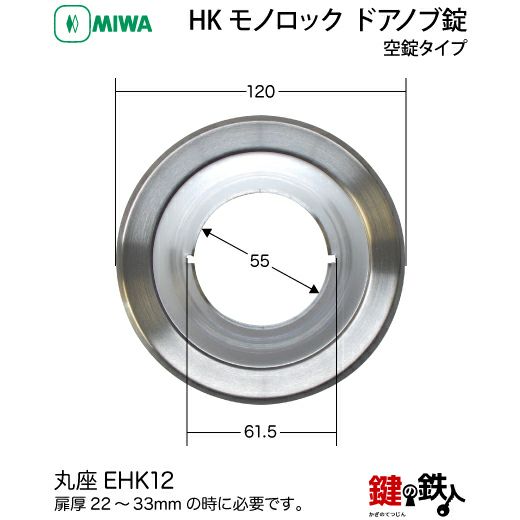 | ■ドア厚み | 28mm以上~64mm未満 ※28mm以上~30mm未満には、丸座EHK12とライナーが必要 ※30mm以上~33mm未満には、丸座EHK12が必要 |