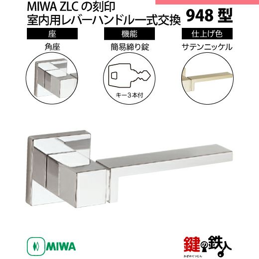 【2-8】MIWA ZLCの刻印 室内用の内外のレバーハンドル948型