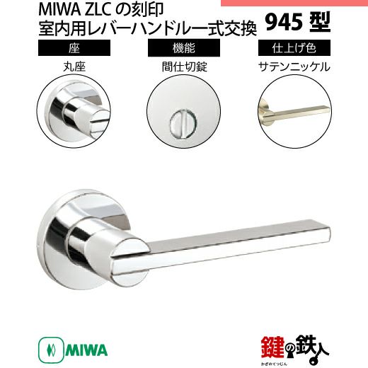 【3-4】MIWA ZLCの刻印 室内用の内外のレバーハンドル945型《間仕切錠》《丸座》とMIWA ZLC錠ケース付