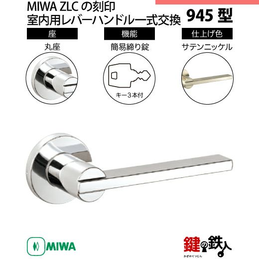 【3-8】MIWA ZLCの刻印 室内用の内外のレバーハンドル945型《簡易締り錠=鍵付き》《丸座》とMIWA ZLC錠ケース付 キー3本付