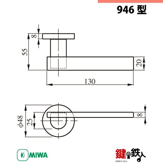 【4-3】MIWA ZLCの刻印 室内用の内外のレバーハンドル946型《間仕切錠》《丸座》とMIWA ZLC錠ケース付
