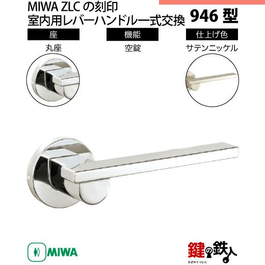 【4-2】MIWA ZLCの刻印 室内用の内外のレバーハンドル946型《空錠》《丸座》とMIWA ZLC錠ケース付