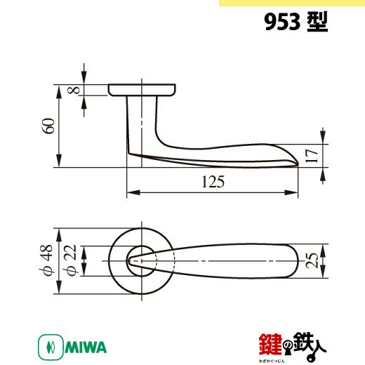 【8-4】MIWA ZLCの刻印 室内用の内外のレバーハンドル953型