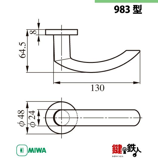 【12】MIWA室内用レバーハンドル 983 丸座/長座11型