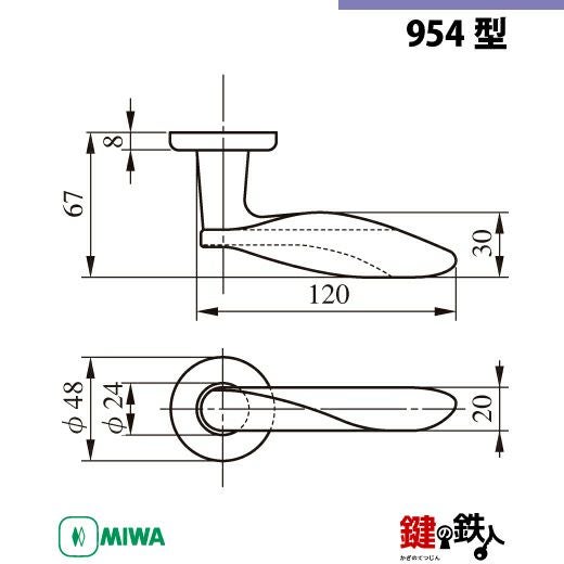 【20-2】MIWA ZLCの刻印 室内用の内外のレバーハンドル954型