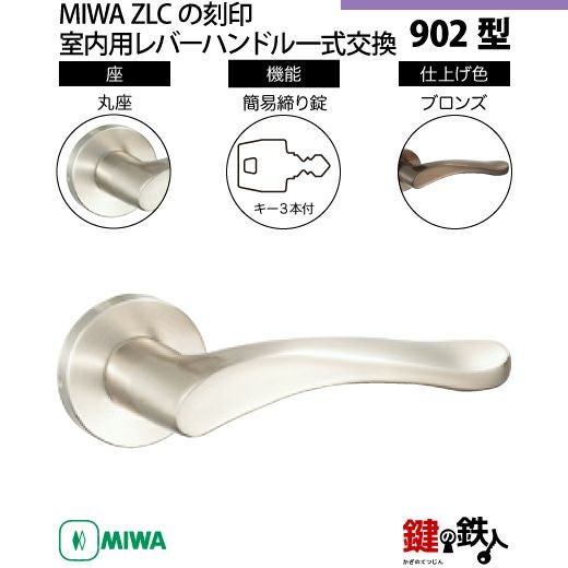 【21-17】MIWA ZLCの刻印 室内用の内外のレバーハンドル902型