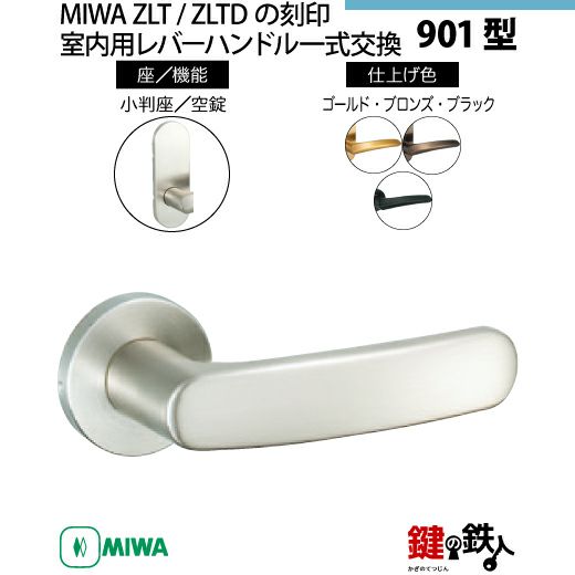【16-Z-5】MIWA ZLTまたはZLTDの刻印 室内用の内外のレバーハンドル901型
