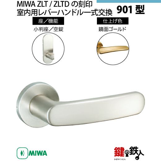 【16-Z-6】MIWA ZLTまたはZLTDの刻印 室内用の内外のレバーハンドル901型