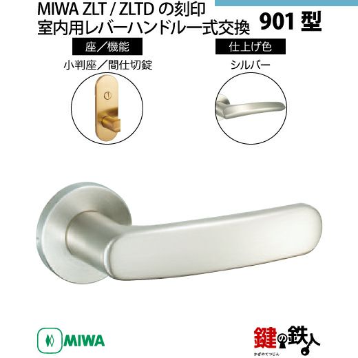 【16-Z-7】MIWA ZLTまたはZLTDの刻印 室内用の内外のレバーハンドル901型