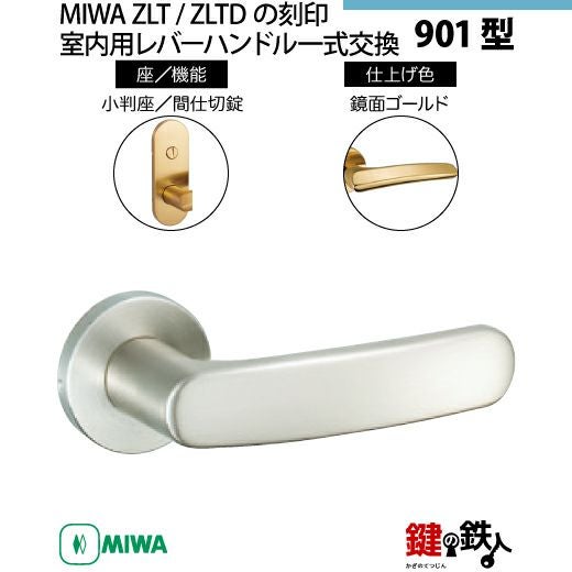 【16-Z-9】MIWA ZLTまたはZLTDの刻印 室内用の内外のレバーハンドル901型