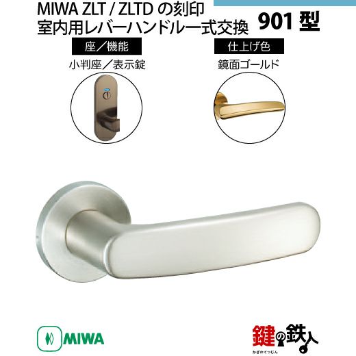 【16-Z-12】MIWA ZLTまたはZLTDの刻印 室内用の内外のレバーハンドル901型