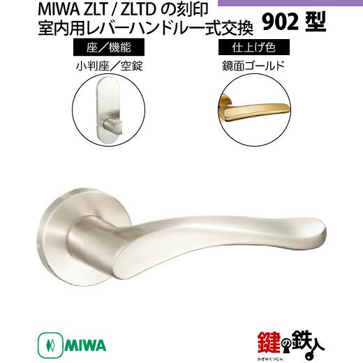 【21-Z-6】MIWA ZLTまたはZLTDの刻印 室内用の内外のレバーハンドル902型
