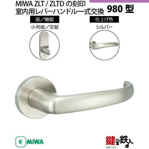 【22-Z-3】MIWA ZLTまたはZLTDの刻印 室内用の内外のレバーハンドル980型
