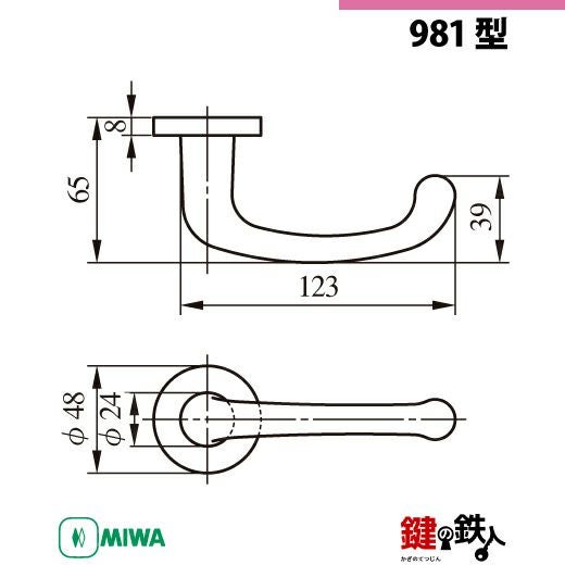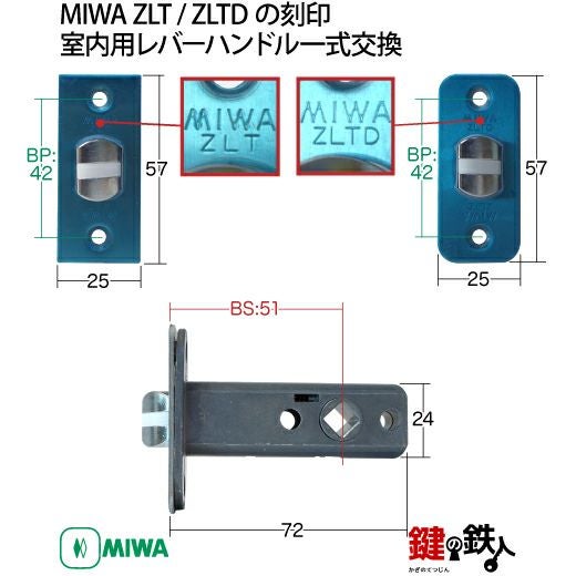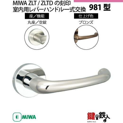 【24-Z-2】MIWA ZLTまたはZLTDの刻印 室内用の内外のレバーハンドル981型