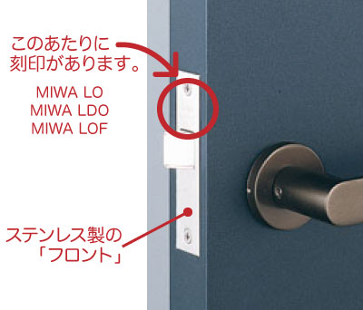 MIWA 03ZLCの刻印 室内のレバーハンドルを鍵付きに交換