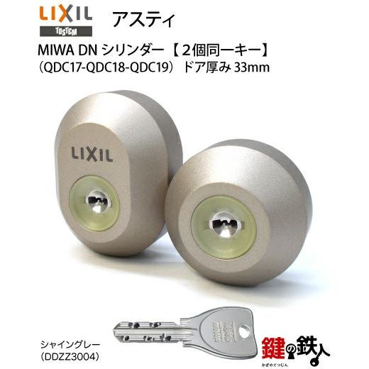 | TOSTEM(LIXIL)玄関ドア「アスティ・Asty」の交換用シリンダーの紹介です。 刻印は上からQDC-17・QDC-18・QDC-19でDNシリンダータイプになります。既存のもの(現在取付けられているもの)と同じ鍵の交換ができます。 |