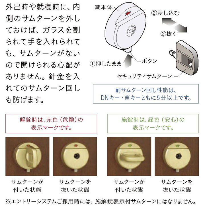 ガラス破りに強い【セキュリティサムターン】