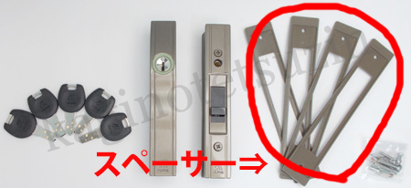 錠前とドアとの間に出来た隙間を埋めるための、薄い板状パーツ。これを挟み込むことで、隙間を無くします。