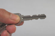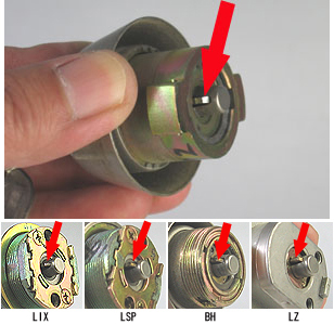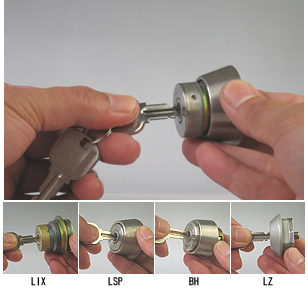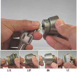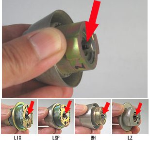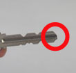 ① 取外したMIWAのシリンダーにキーを挿し込んでみましょう。(大きい画像はLAです。)