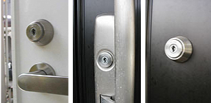 ② ドアについているシリンダーがこのような縦向きのキー差込口。